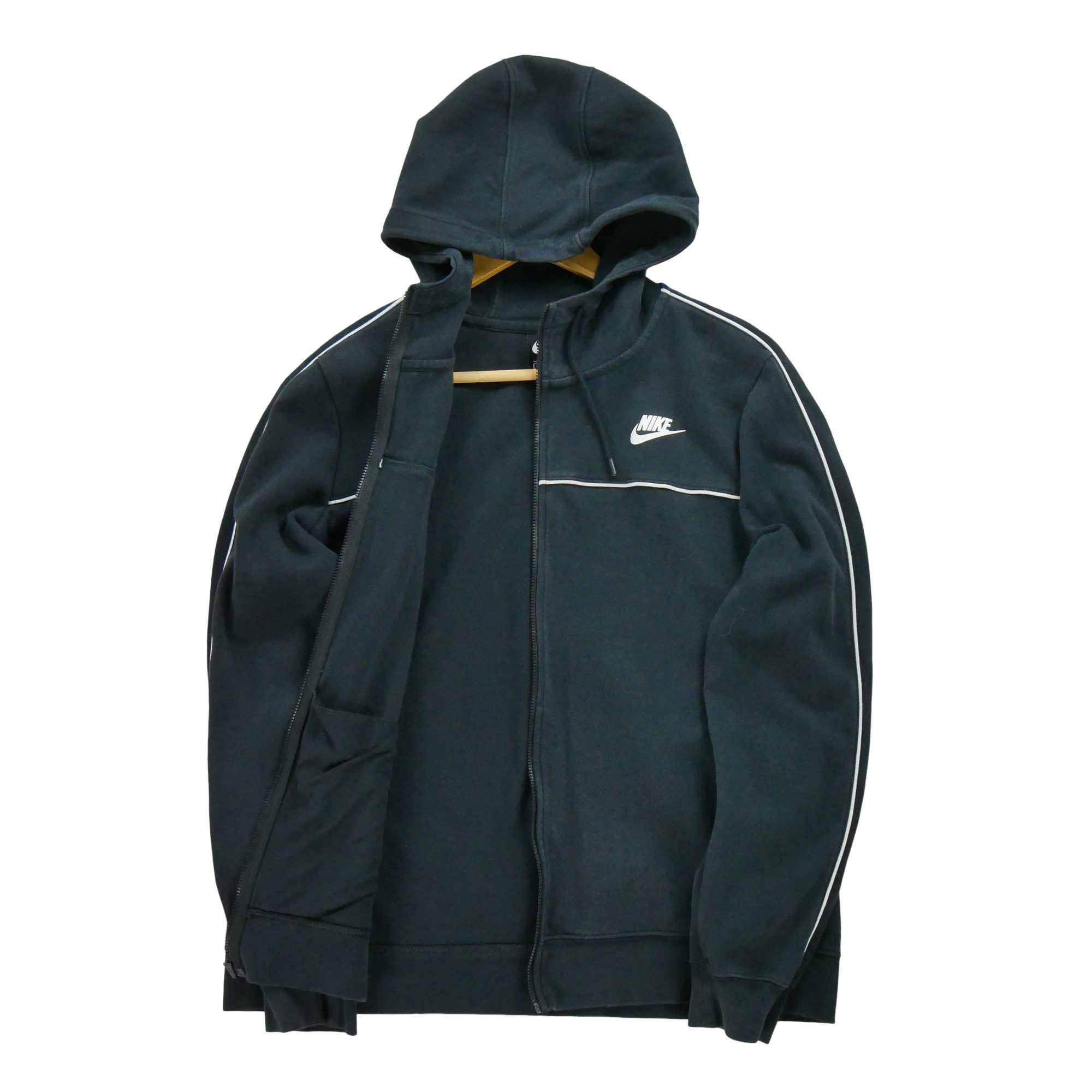Ce sweat à capuche zippé pour homme de la marque Nike en taille L est un produit d'occasion en excellent état. Nous l'avons soigneusement vérifié et nettoyé afin de vous offrir un produit de qualité, prêt à être porté. Bien qu'il s'agisse d'un vêtement de seconde main, il ne présente aucun défaut majeur et est en parfait état pour accompagner vos séances sportives.