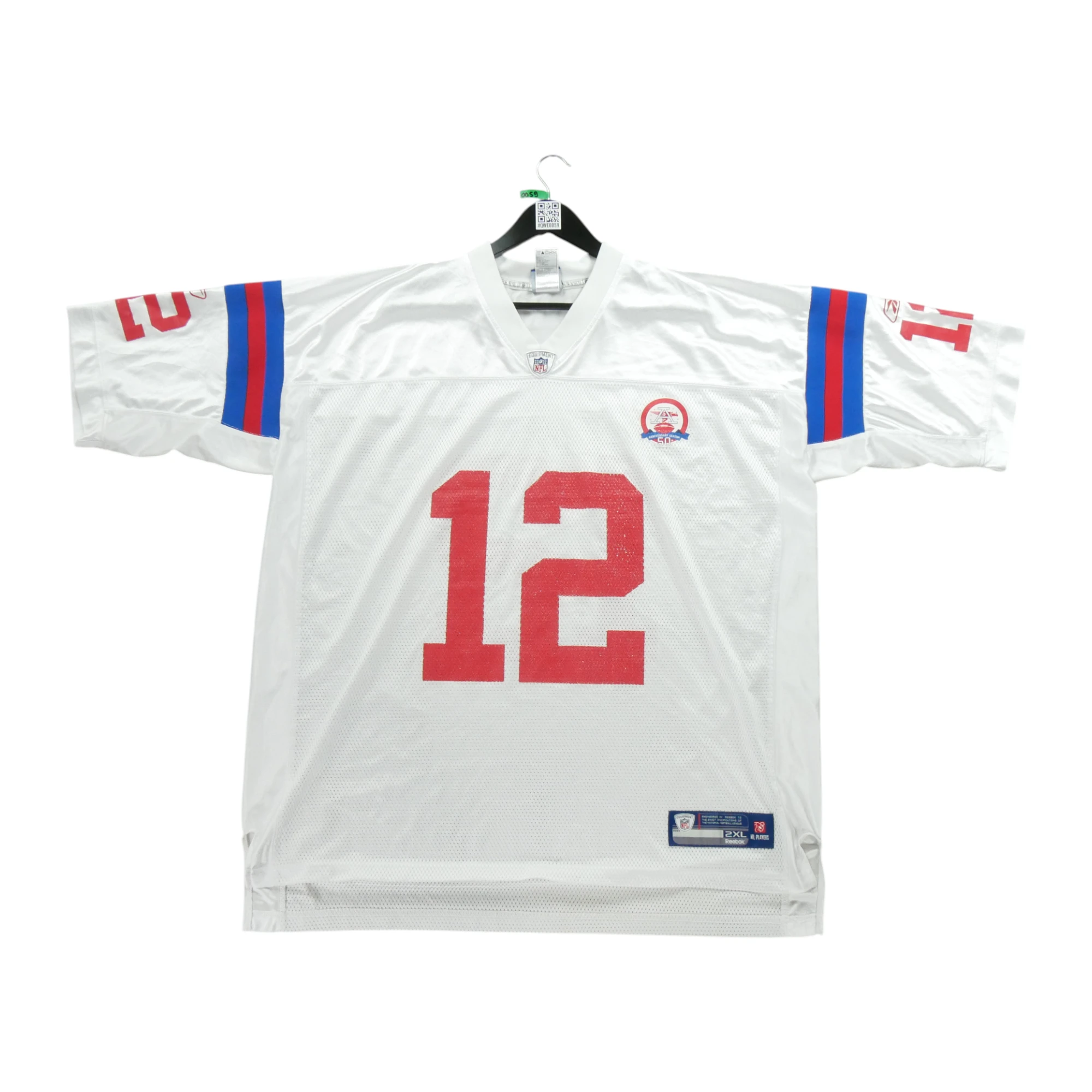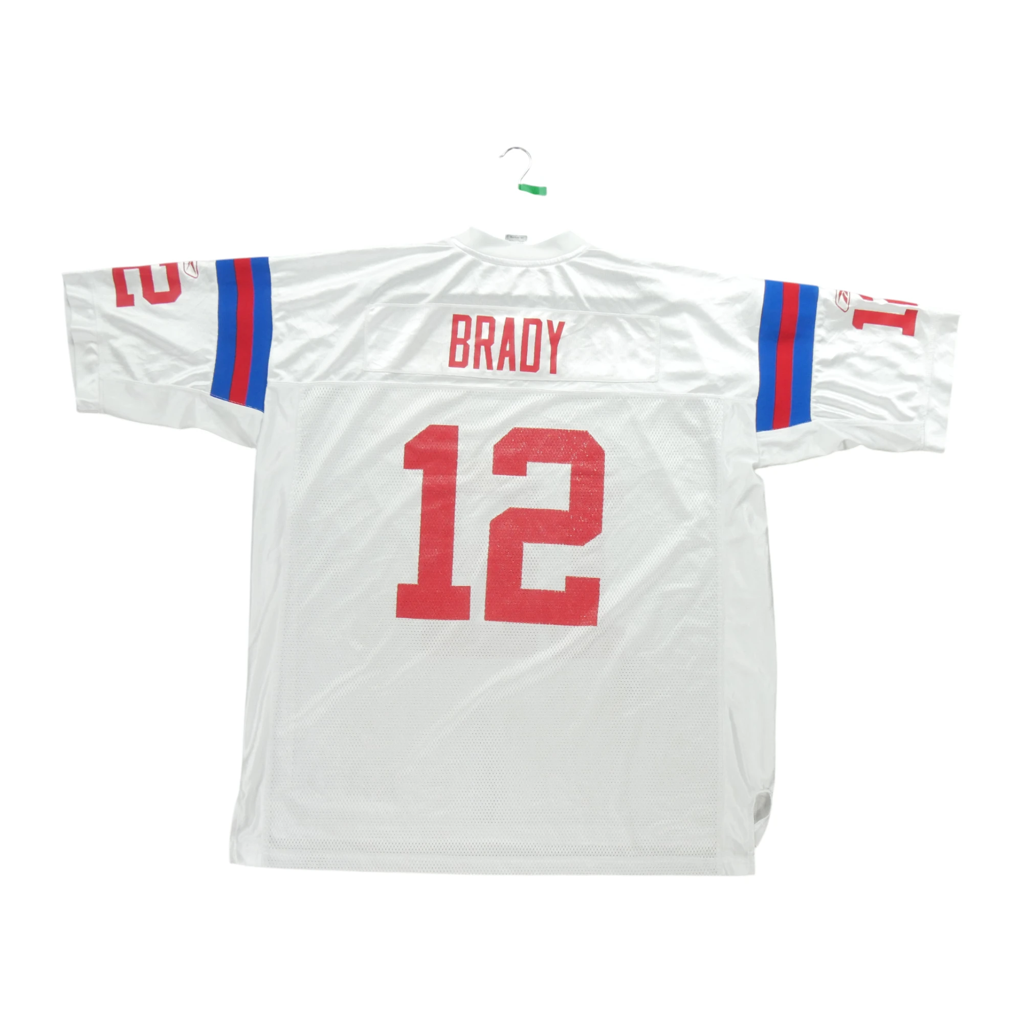 Nos vêtements reconditionnés ont été vérifiés par nos experts puis nettoyés afin d'être portés de nouveau. Ce maillot homme NFL Tom Brady blanc de la marque Reebok en taille 2XL est un produit d'occasion en très bon état. Nous l'avons minutieusement inspecté pour vous offrir un produit de qualité. Bien qu'il puisse y avoir de légères traces d'usure, le maillot est 100% fonctionnel et ne présente aucun défaut majeur. Vous pouvez donc être sûr(e) de faire une bonne affaire en achetant ce produit.