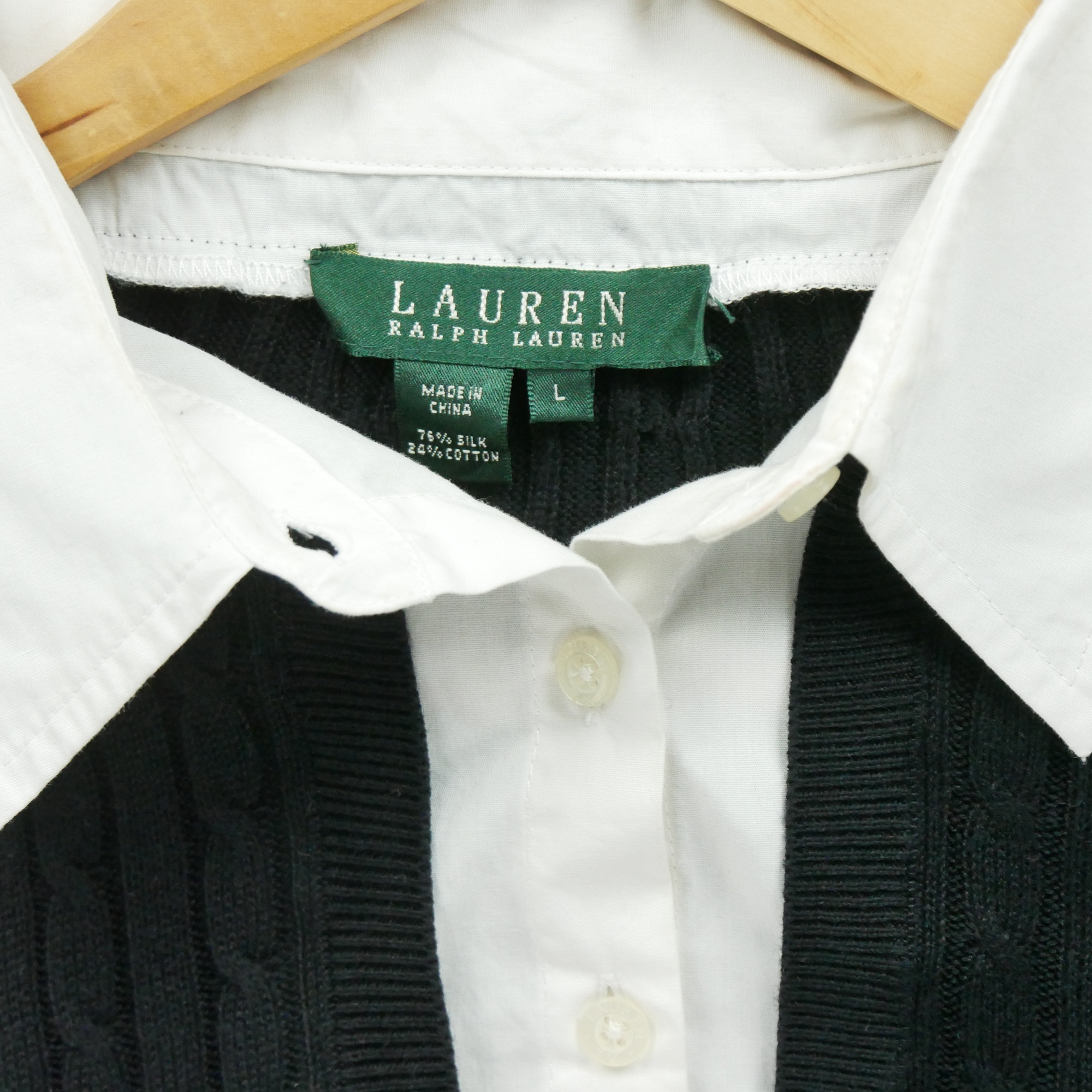Offrez-vous le luxe de la soie à un prix abordable avec ce pull reconditionné de la marque Lauren Ralph Lauren en taille L.