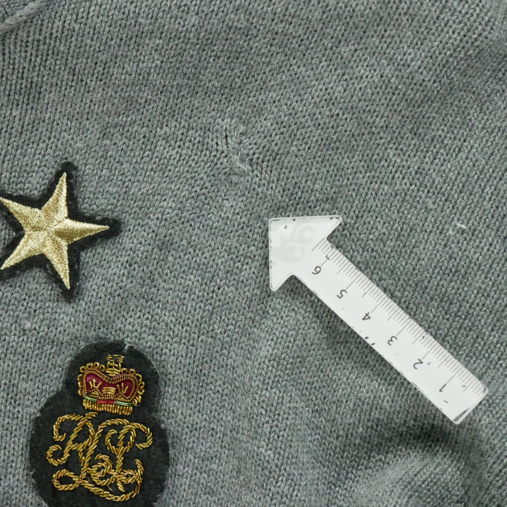 L’article présente plusieurs défauts importants : taches, bouloches, déchirures, fils décousus ou trous. L’article a été porté ou utilisé plusieurs fois. Il présente plusieurs imperfections visibles et traces d’usures (présentes sur les photos et indiquées dans la description dans la rubrique « Remarques » de la fiche article).