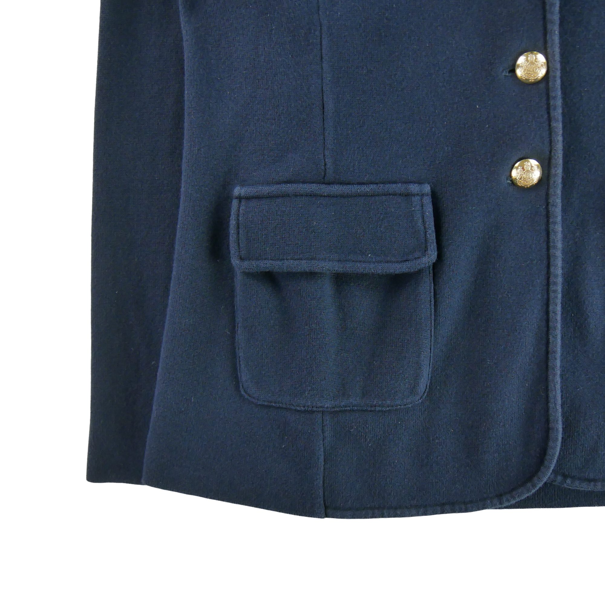 Nos vêtements reconditionnés ont été vérifiés par nos experts puis nettoyés afin d'être portés de nouveau. Cette veste cardigan marine pour femme de la marque Lauren Ralph Lauren en taille L est un produit d'occasion en très bon état. Nous l'avons minutieusement vérifiée et nettoyée pour vous offrir un produit de qualité. Bien qu'il puisse y avoir de légères traces d'usure, la veste est 100% fonctionnelle et ne présente aucun défaut majeur. Vous pouvez donc être sûr(e) de faire une bonne affaire en achetant ce produit.