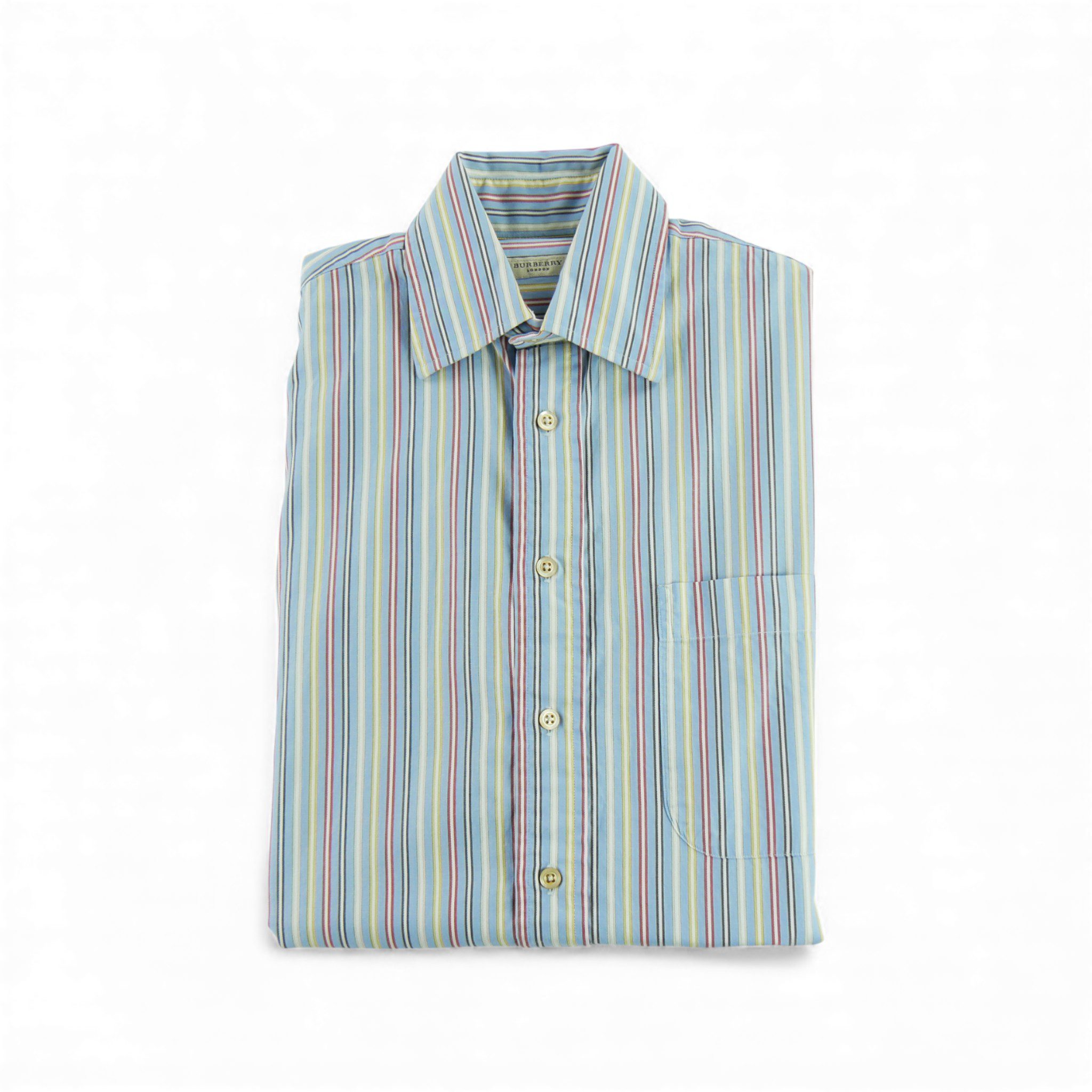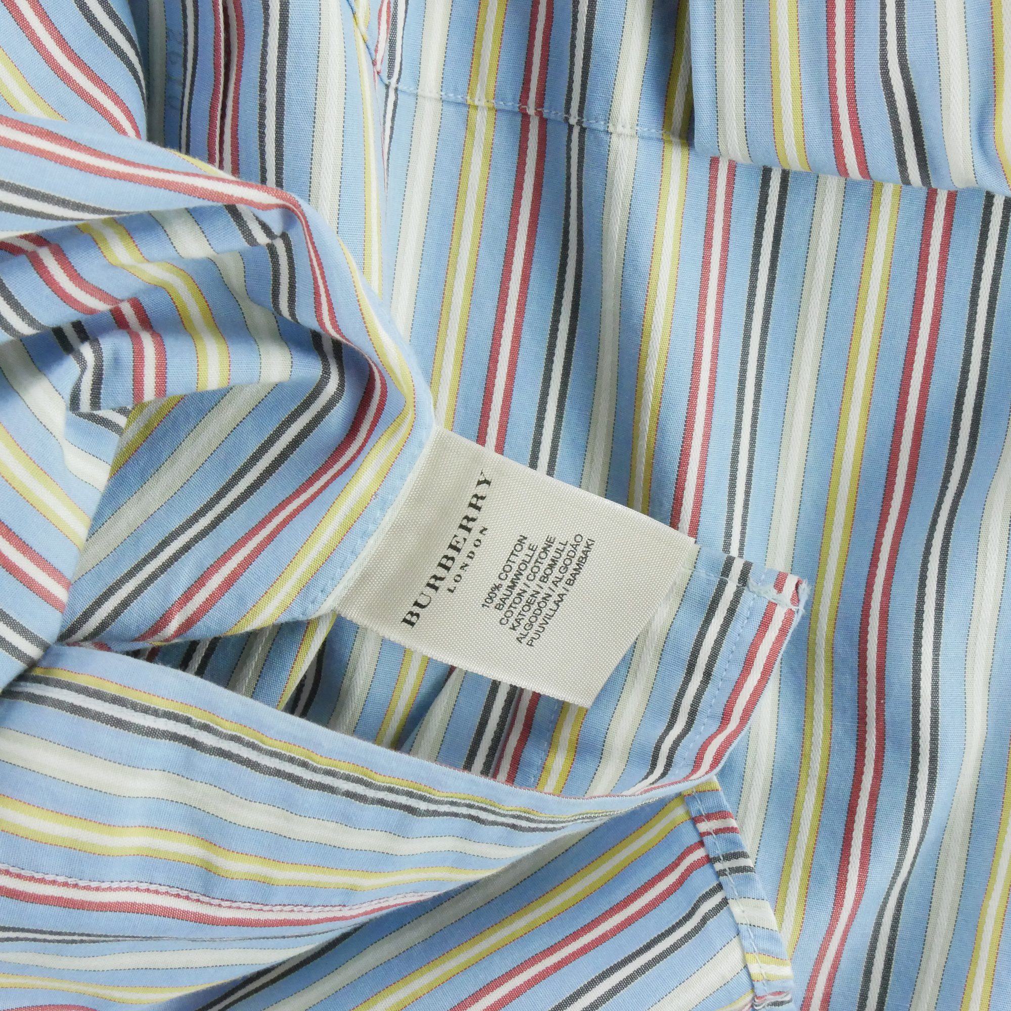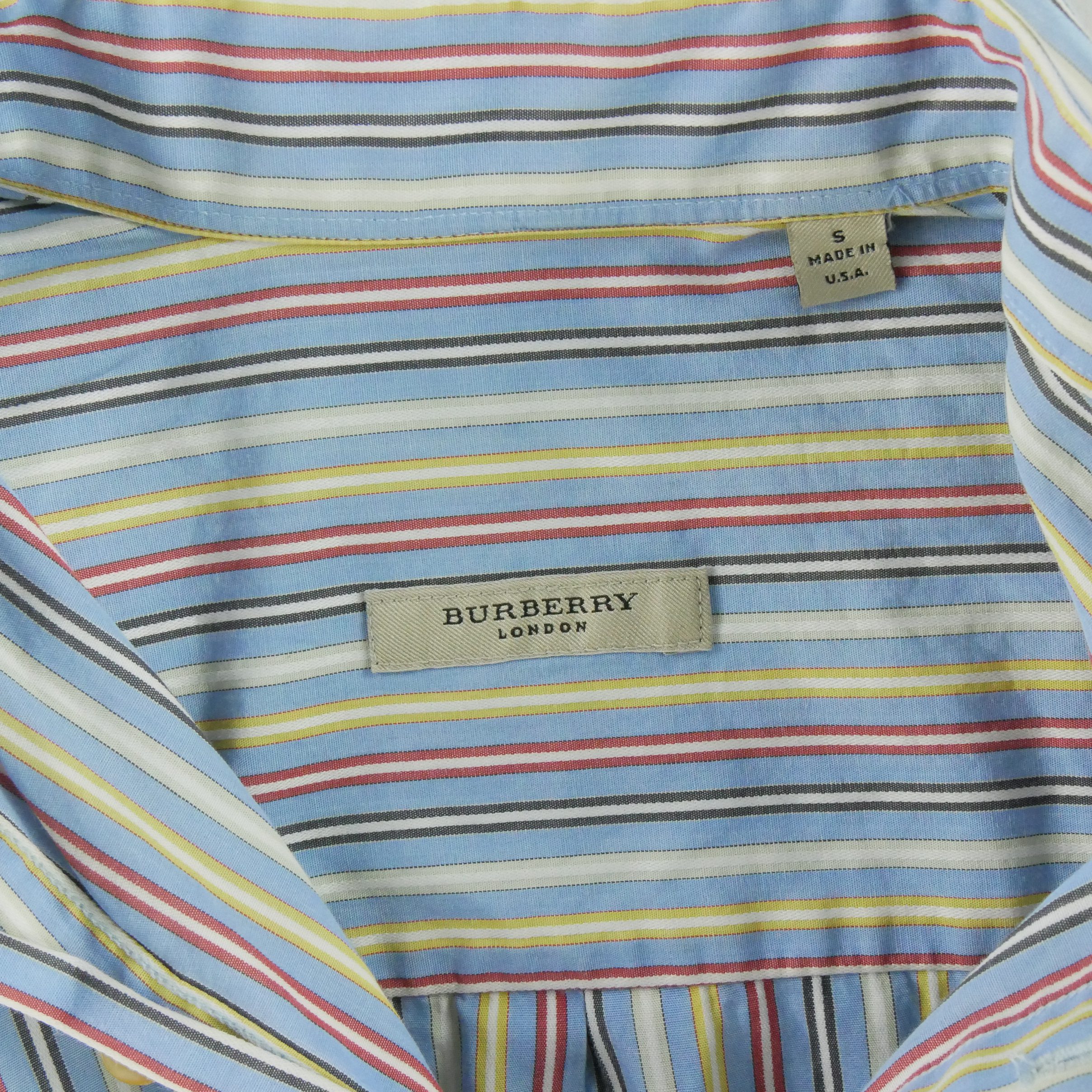 Cette chemise classique pour homme à rayures de la marque Burberry en taille S et couleur bleu clair est un incontournable pour un look élégant au quotidien. Les rayures apportent une touche de sophistication à cette chemise intemporelle, idéale pour les occasions formelles ou décontractées.