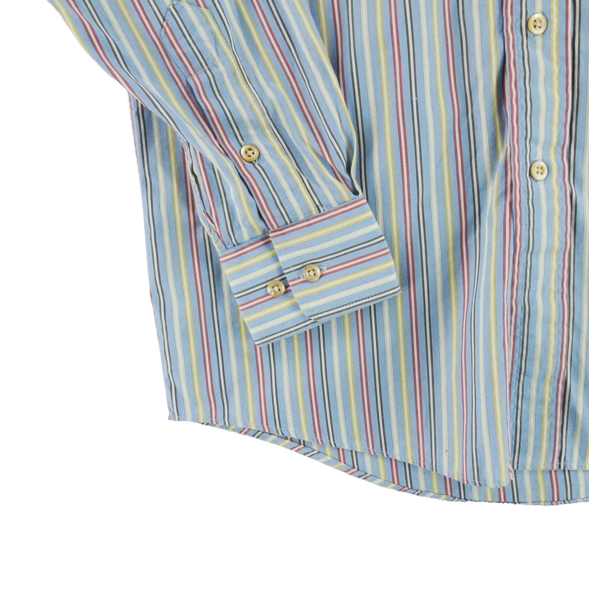 Cette chemise classique pour homme à rayures de la marque Burberry en taille S et couleur bleu clair est un produit d'occasion en excellent état. Nos vêtements reconditionnés ont été vérifiés par nos experts puis nettoyés afin d'être portés de nouveau. Bien qu'il puisse y avoir de légères traces d'usure, la chemise est 100% fonctionnelle et ne présente aucun défaut majeur. Vous pouvez donc être sûr(e) de faire une bonne affaire en achetant ce produit.