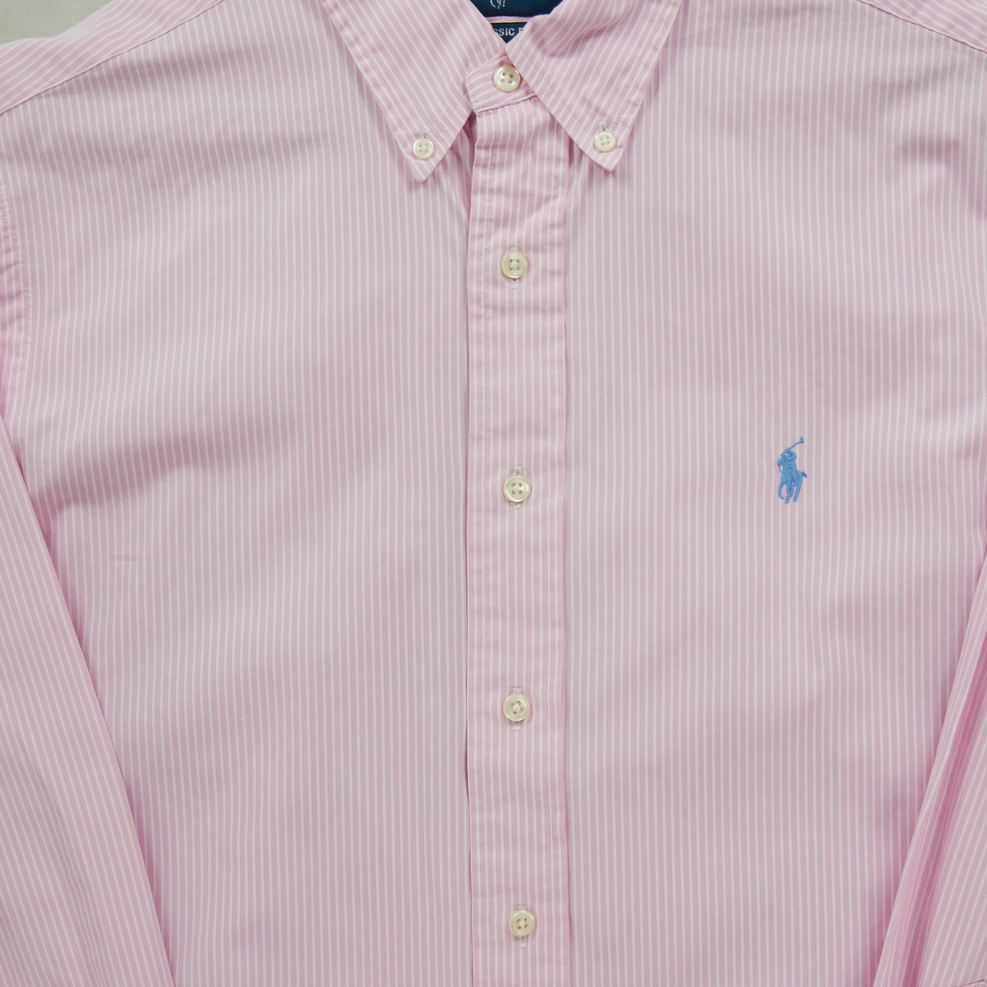 Cette chemise classique homme à rayures de la marque Polo Ralph Lauren en taille L est un vêtement de seconde main en excellent état. Nos experts l'ont minutieusement vérifiée et nettoyée pour vous offrir un produit prêt à être porté. Bien qu'il puisse y avoir de légères traces d'usure, la chemise est 100% fonctionnelle et ne présente aucun défaut majeur.