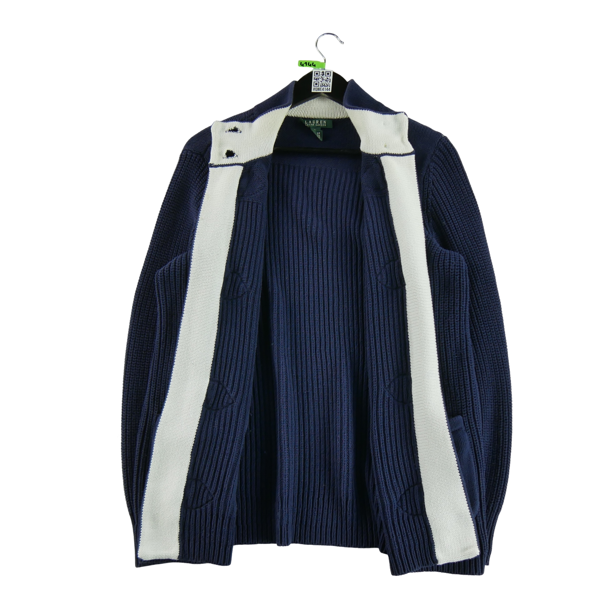 L’article présente plusieurs défauts importants : taches, bouloches, déchirures, fils décousus ou trous. L’article a été porté ou utilisé plusieurs fois. Il présente plusieurs imperfections visibles et traces d’usures (présentes sur les photos et indiquées dans la description dans la rubrique « Remarques » de la fiche article).