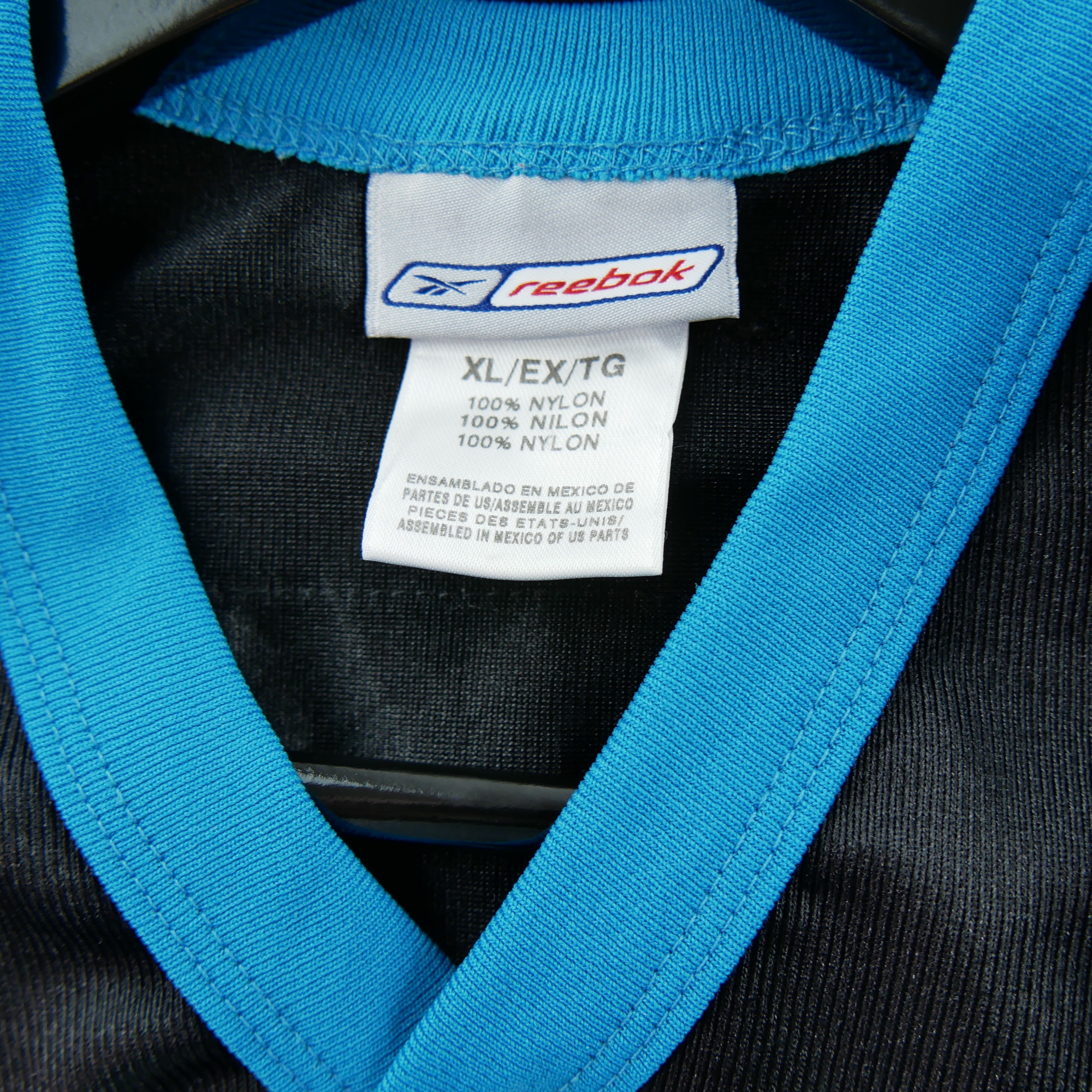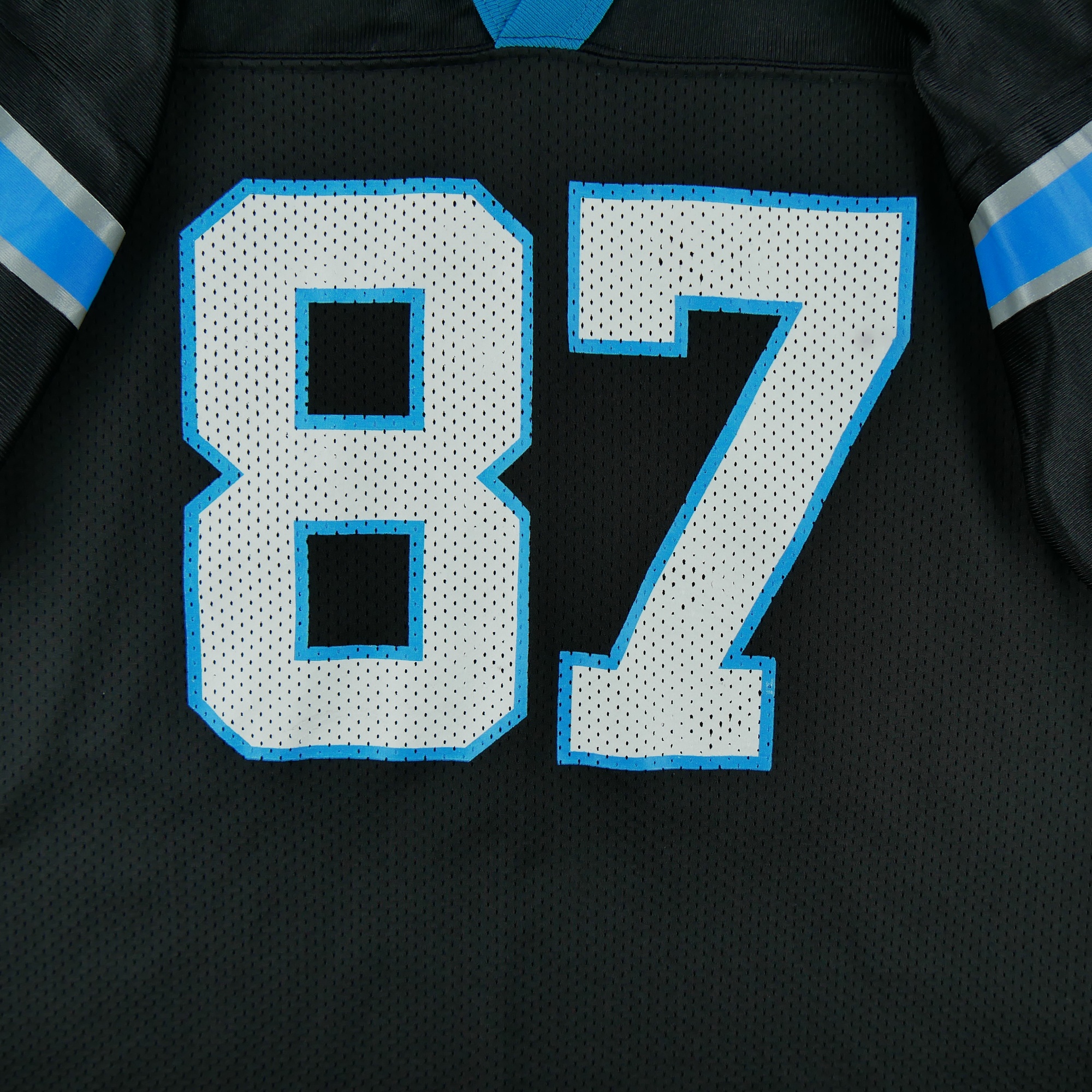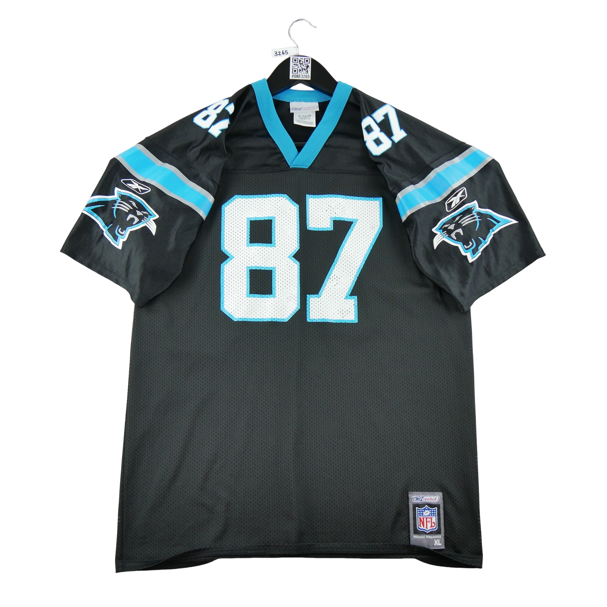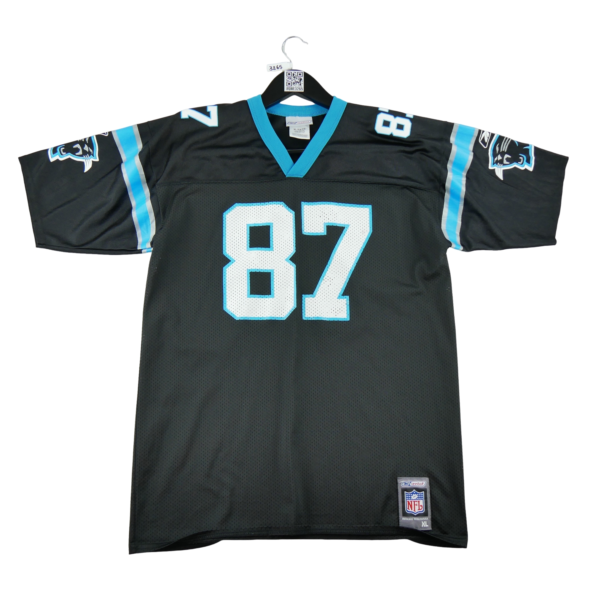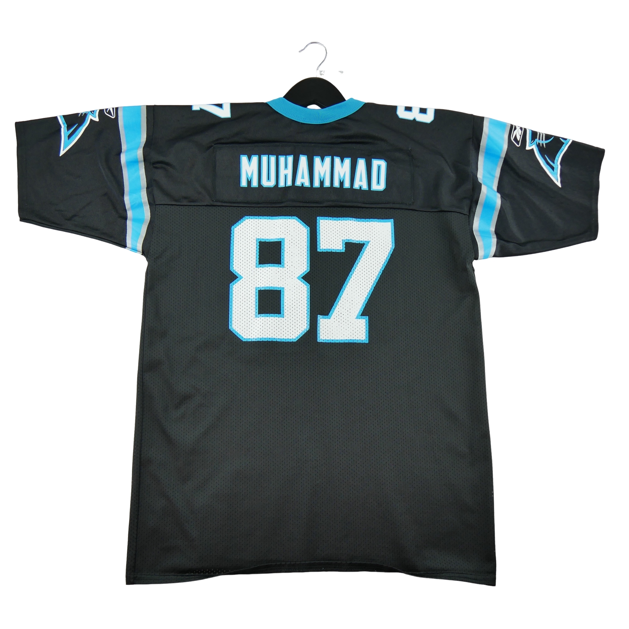 Ce maillot homme NFL Carolina Panthers en noir signé Reebok est une pièce d'occasion idéale pour les passionnés de football américain. Proposé en taille 18/20 ans, il s'adresse autant aux jeunes fans qu'aux collectionneurs à la recherche d'un maillot authentique aux couleurs de cette équipe emblématique.