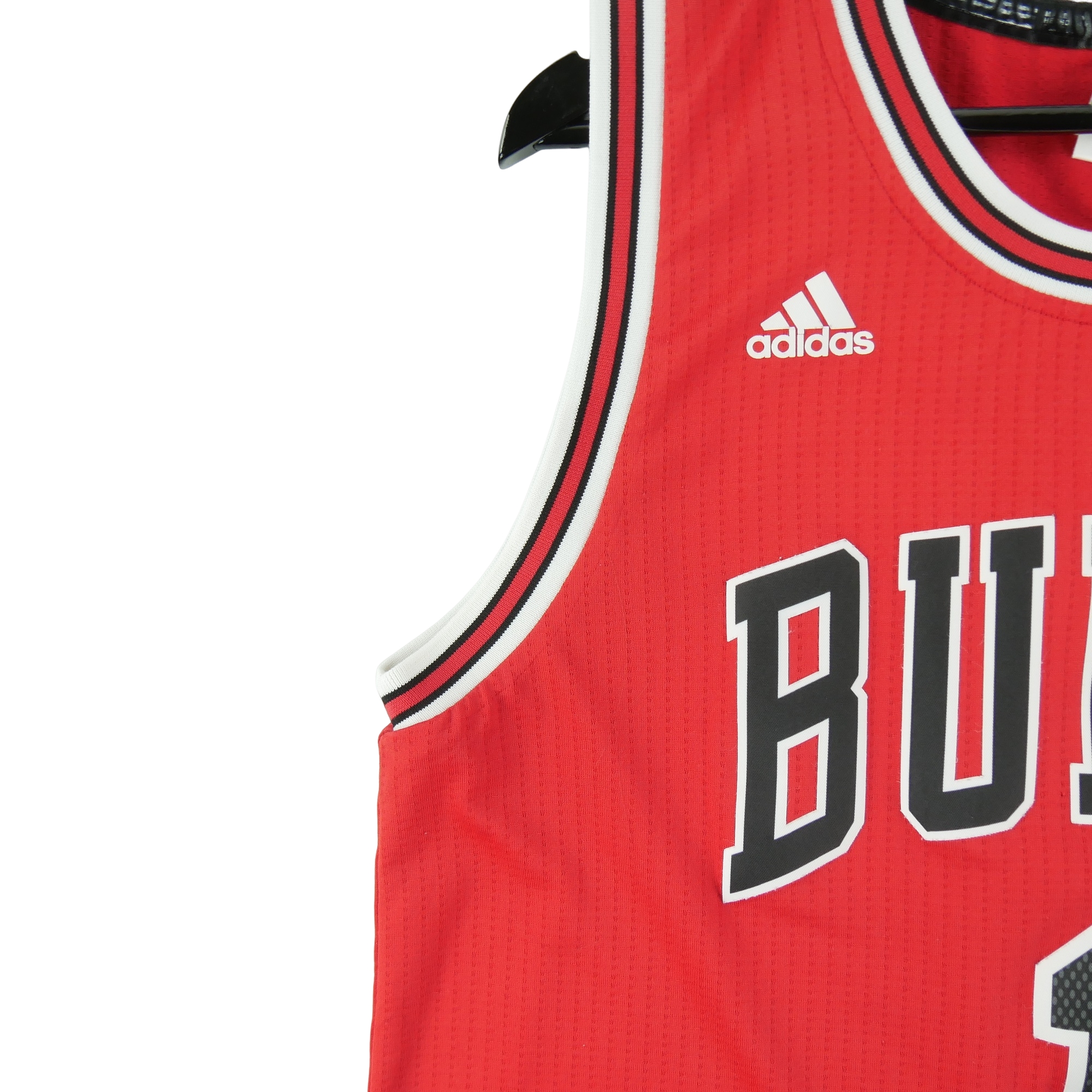 Ce maillot NBA Chicago Bulls rouge de la marque Adidas en taille M offre un style authentique et un confort optimal pour pratiquer le basketball ou simplement afficher votre passion pour votre équipe favorite.
