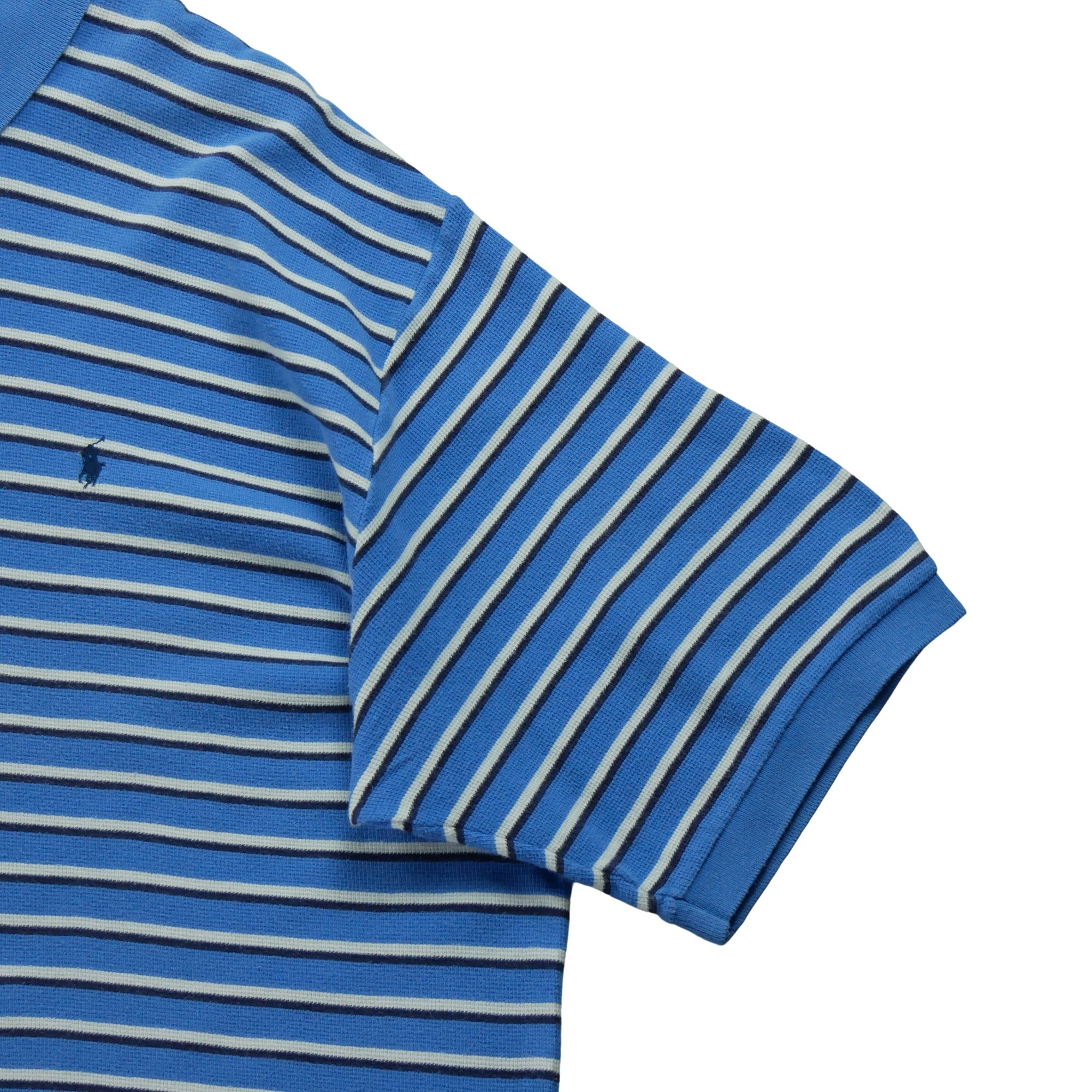 Ce polo manches courtes pour homme de la marque Polo Ralph Lauren en taille 2XL, bleu, est un vêtement de seconde main idéal pour les amateurs de golf. Avec son design classique et sa couleur bleue intemporelle, il allie style et confort pour vous accompagner sur les parcours. La taille 2XL conviendra à de nombreuses morphologies masculines.