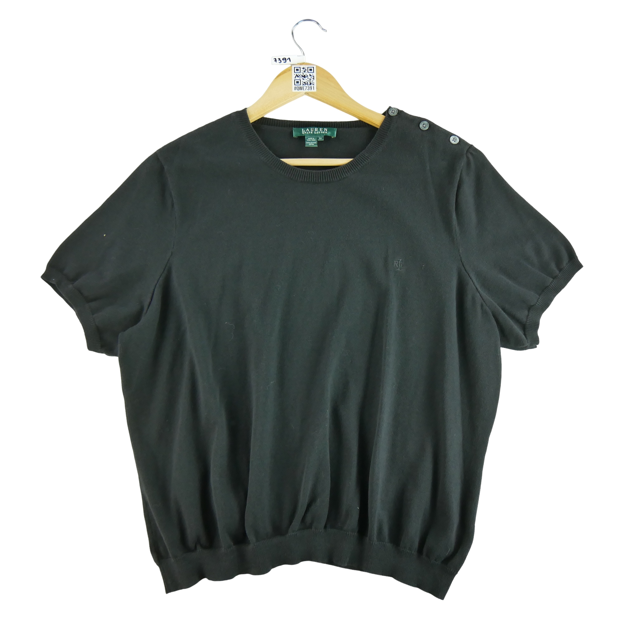 Nous sommes engagés à vous offrir des vêtements de seconde main en excellent état. Chaque produit a été rigoureusement vérifié et nettoyé par nos experts pour vous garantir une qualité irréprochable. En choisissant ce pull femme noir Lauren Ralph Lauren en taille 2XL, vous faites le choix d'un produit de qualité, prêt à être porté et apprécié.