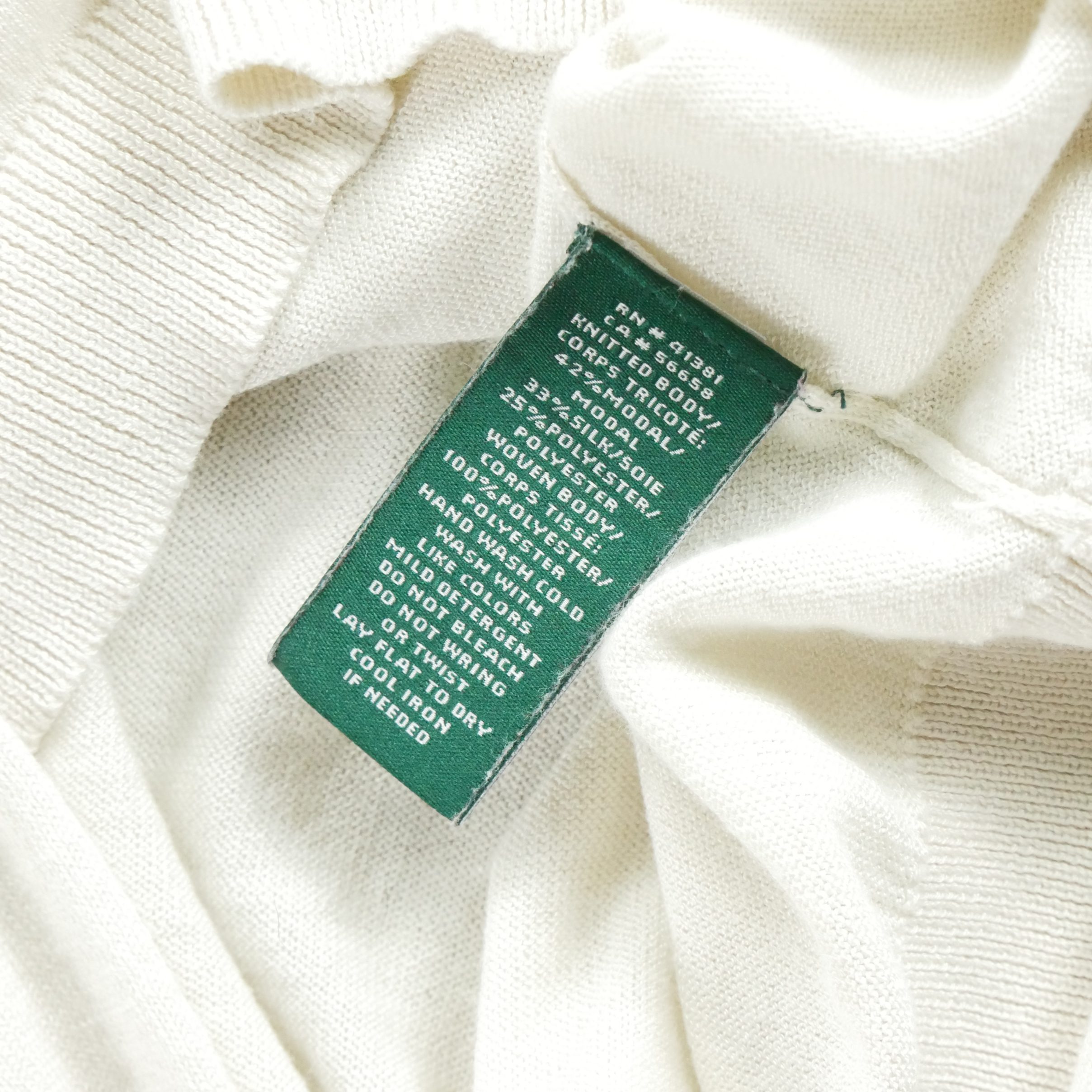Matière(s) : Fibre de bois 42% – Soie 33% – Polyester 25%