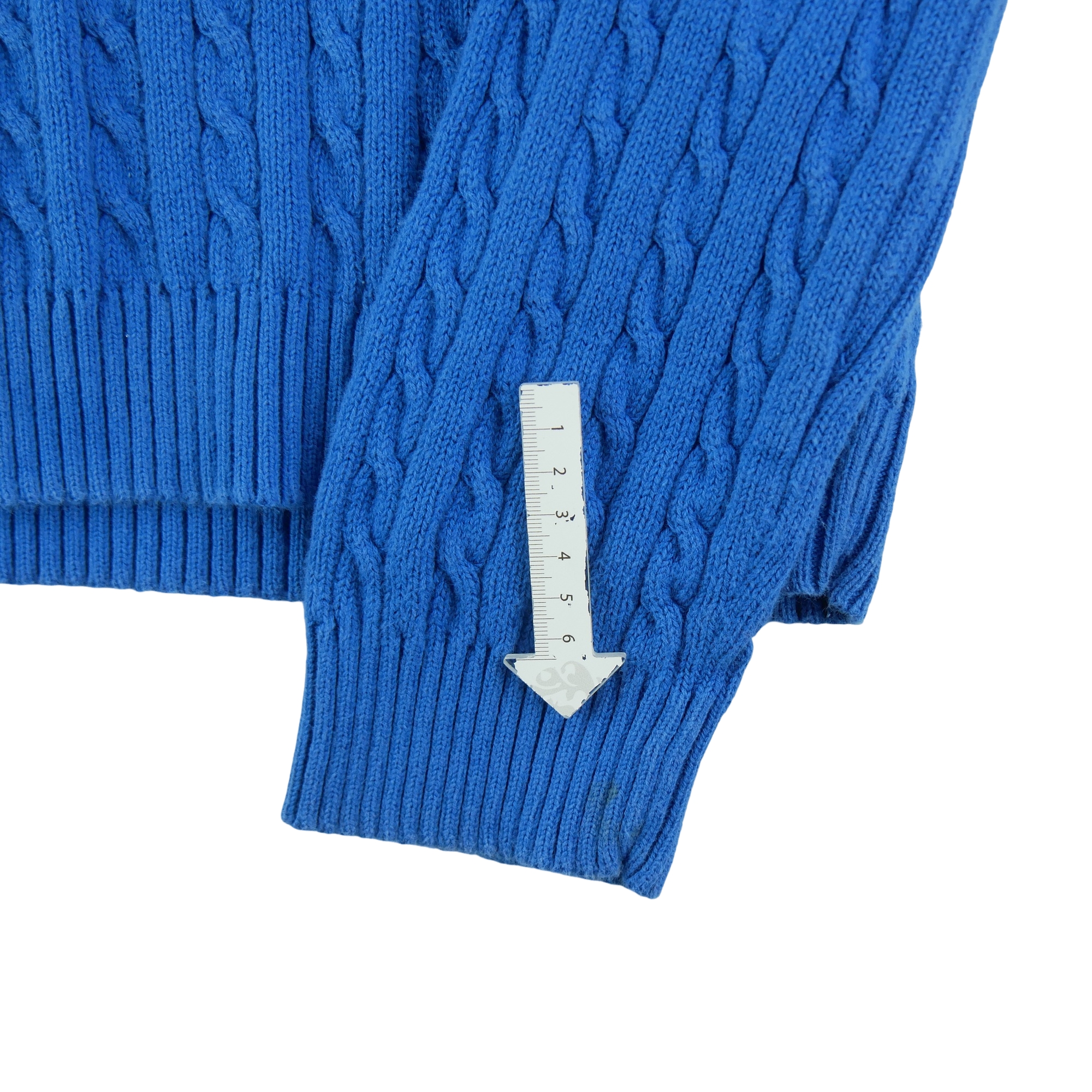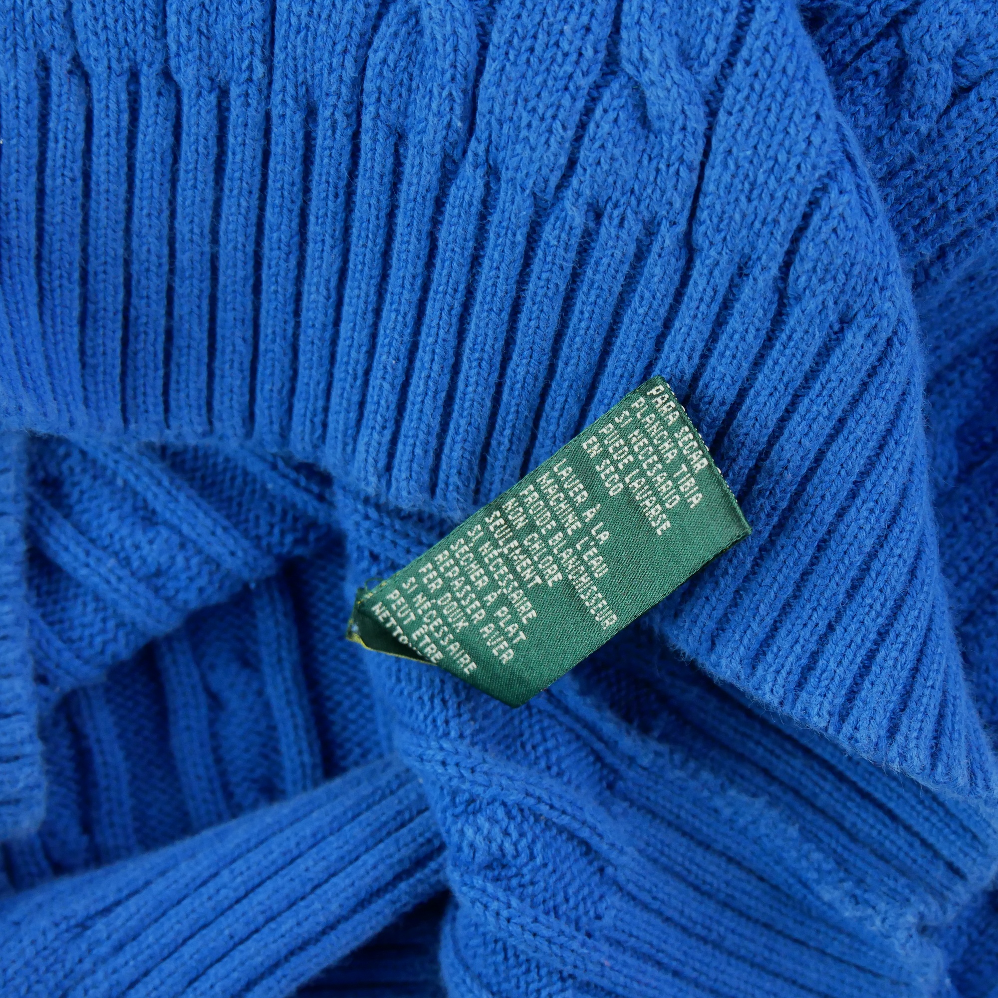 Nos vêtements reconditionnés ont été vérifiés par nos experts puis nettoyés afin d'être portés de nouveau. Ce pull femme en maille torsadée bleu de la marque Lauren Ralph Lauren en taille M est un produit d'occasion en bon état. Nous l'avons minutieusement inspecté et nettoyé pour vous offrir un produit de qualité, prêt à être porté. Bien qu'il puisse y avoir de légères traces d'usure, le pull est 100% fonctionnel et ne présente aucun défaut majeur. Vous pouvez donc être sûr(e) de faire une bonne affaire en achetant ce produit de seconde main.