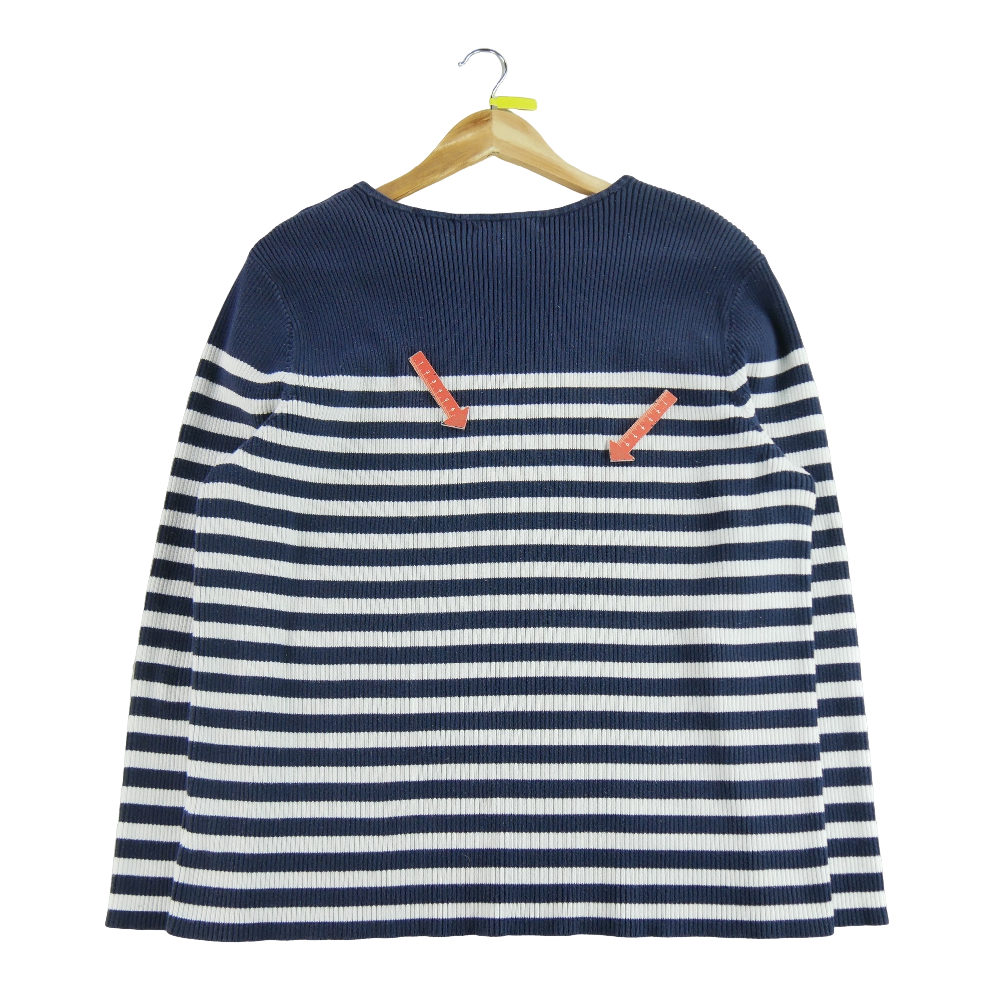 La longueur est mesurée du col au bas du vêtement. La largeur est mesuré d’aisselle à aisselle. La longueur des manches est mesurée du col au bas de la manche.