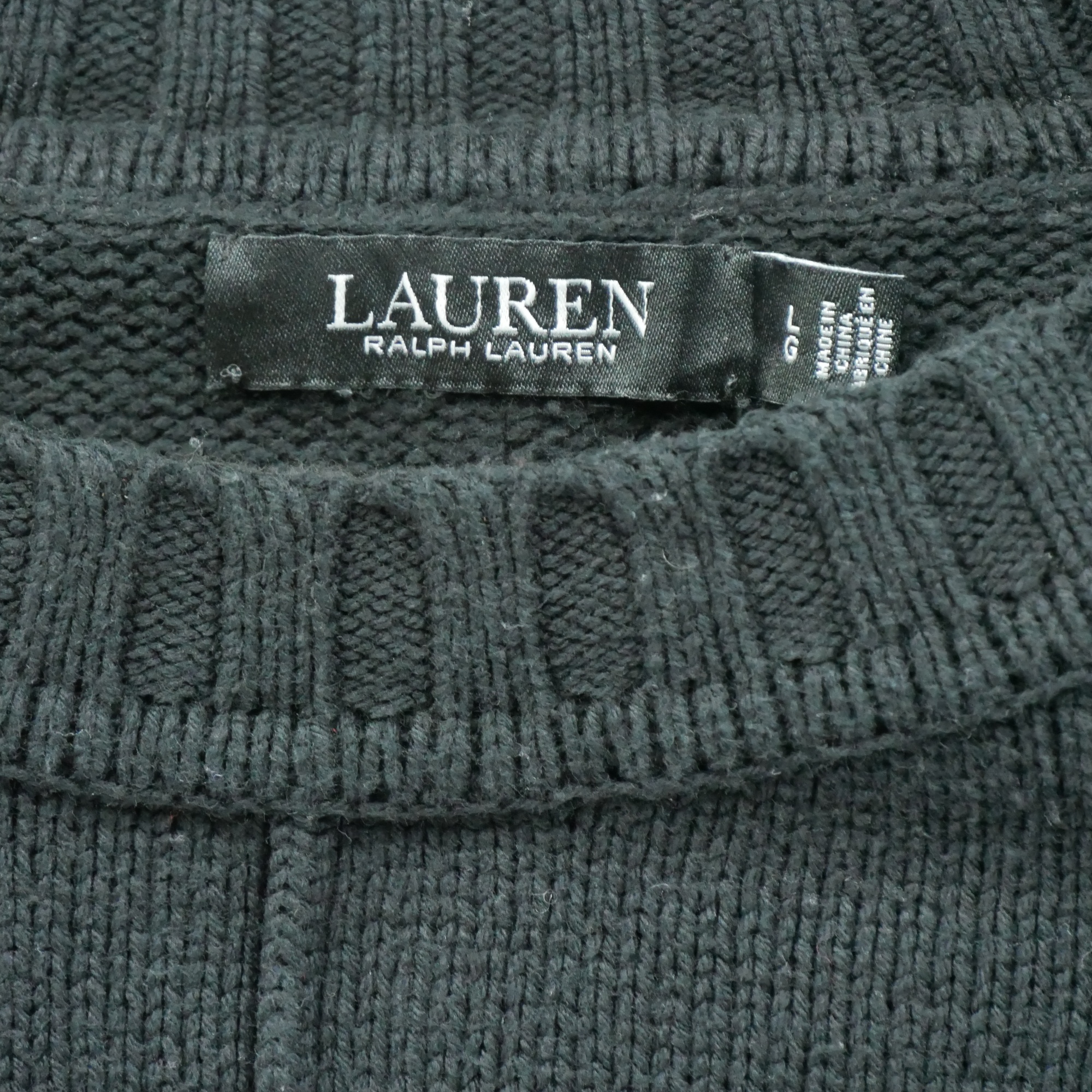 Nos vêtements reconditionnés ont été vérifiés par nos experts puis nettoyés afin d'être portés de nouveau. Ce pull noir pour femme de la marque Lauren Ralph Lauren en taille L est un produit d'occasion en très bon état. Nous l'avons minutieusement inspecté et nettoyé pour vous offrir un produit de qualité. Bien qu'il puisse présenter de légères traces d'usure, le pull est 100% fonctionnel et ne présente aucun défaut majeur.