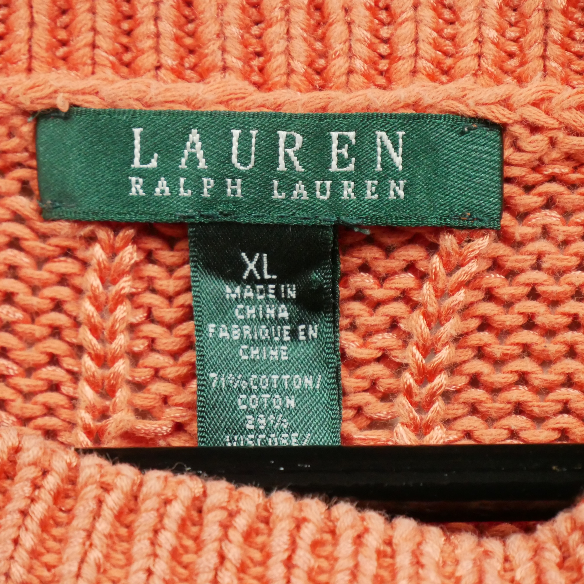 Nous nous engageons à vous offrir des vêtements de seconde main en excellent état. Chaque produit a été soigneusement vérifié et nettoyé par nos experts pour vous garantir une qualité irréprochable. En achetant ce pull femme orange de la marque Lauren Ralph Lauren en taille XL, vous faites le choix d'un vêtement de qualité, vérifié et reconditionné avec soin.