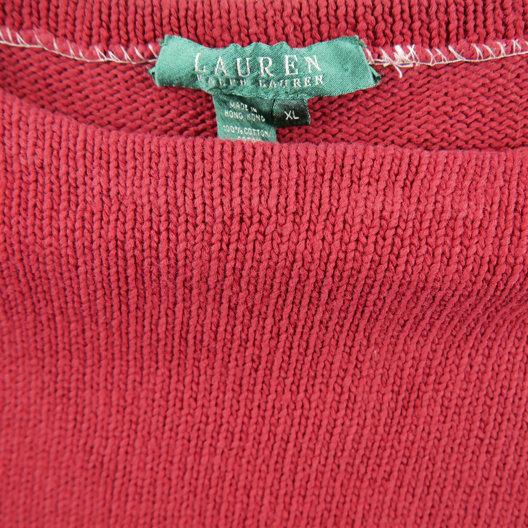 Ce pull femme rouge de la marque Lauren Ralph Lauren en taille XL est un vêtement de seconde main en excellent état. Nous l'avons soigneusement vérifié et nettoyé pour vous offrir un produit de qualité prêt à être porté à nouveau. Bien qu'il puisse y avoir de légères traces d'usure, le pull est 100% fonctionnel et ne présente aucun défaut majeur.