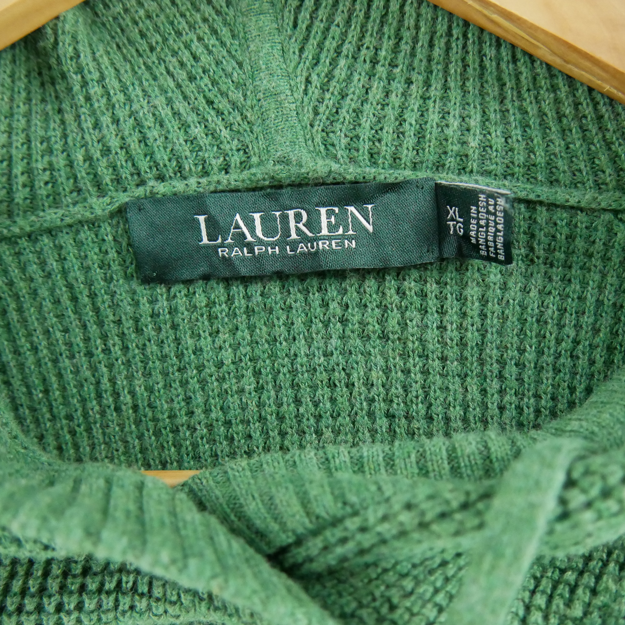 Ce pull femme vert de la marque Ralph Lauren en taille XL est un vêtement de seconde main en très bon état. Il a été soigneusement vérifié et nettoyé par nos experts pour vous offrir un produit de qualité, prêt à être porté. Bien que des traces d'usure puissent être présentes, le pull est 100% fonctionnel et ne présente aucun défaut majeur. Vous pouvez donc être sûr(e) de faire une bonne affaire en achetant ce produit d'occasion.