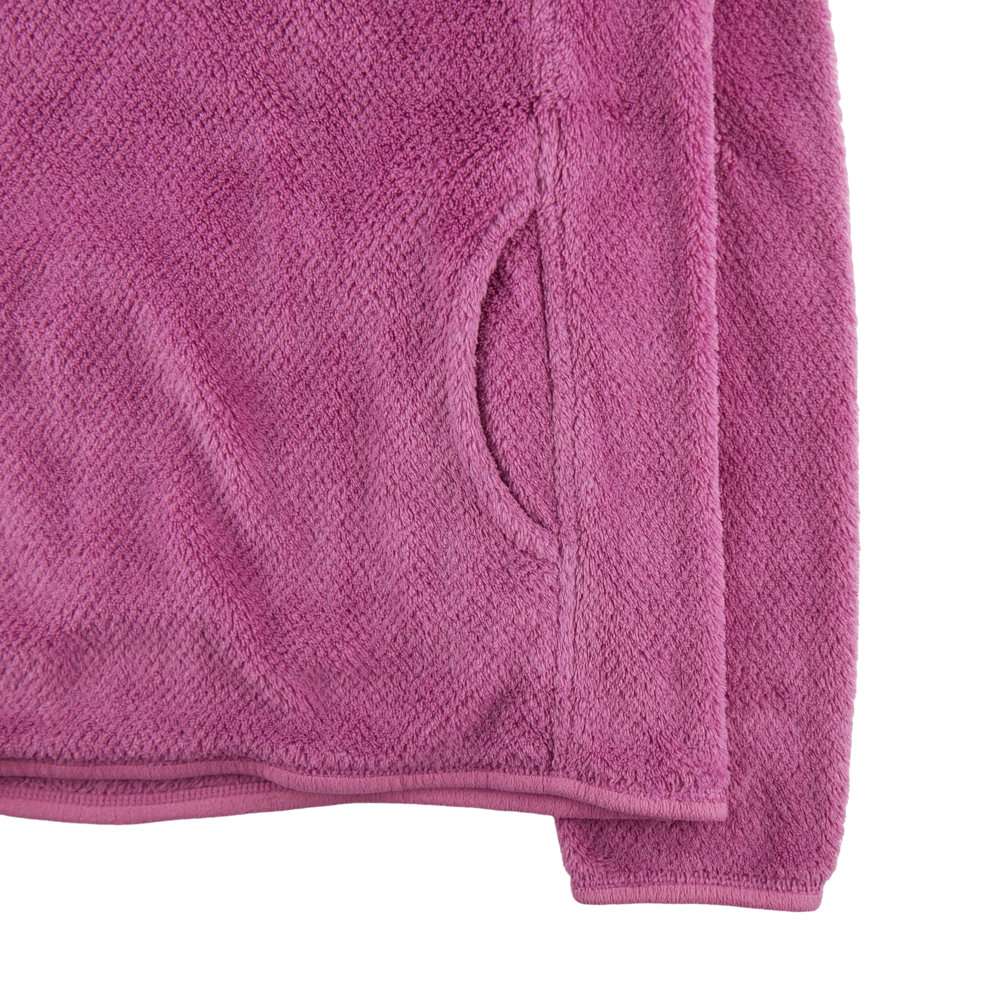 Ce pull polaire femme Patagonia Snap-T en taille M, de couleur rose, est à la fois fonctionnel et esthétique, avec son design élégant et ses finitions soignées.