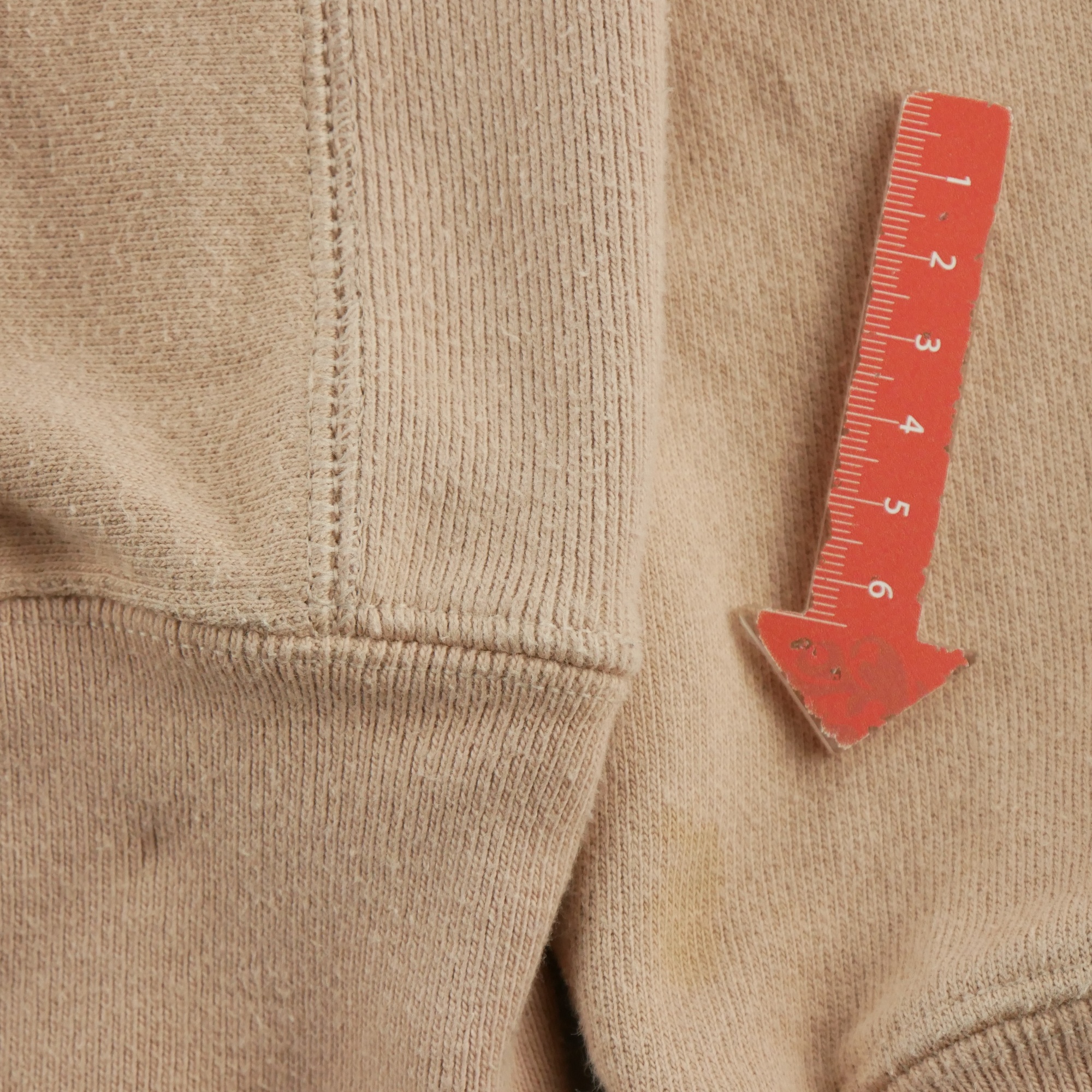 La longueur est mesurée du col au bas du vêtement. La largeur est mesuré d’aisselle à aisselle. La longueur des manches est mesurée du col au bas de la manche.