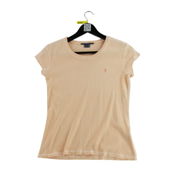 Ce t-shirt manches courtes pour femme de la marque Lauren Ralph Lauren en taille M est un produit d'occasion en très bon état. Nous l'avons vérifié et nettoyé minutieusement pour vous offrir un produit de qualité. Bien qu'il puisse y avoir de légères traces d'usure, le t-shirt est 100% fonctionnel et ne présente aucun défaut majeur.