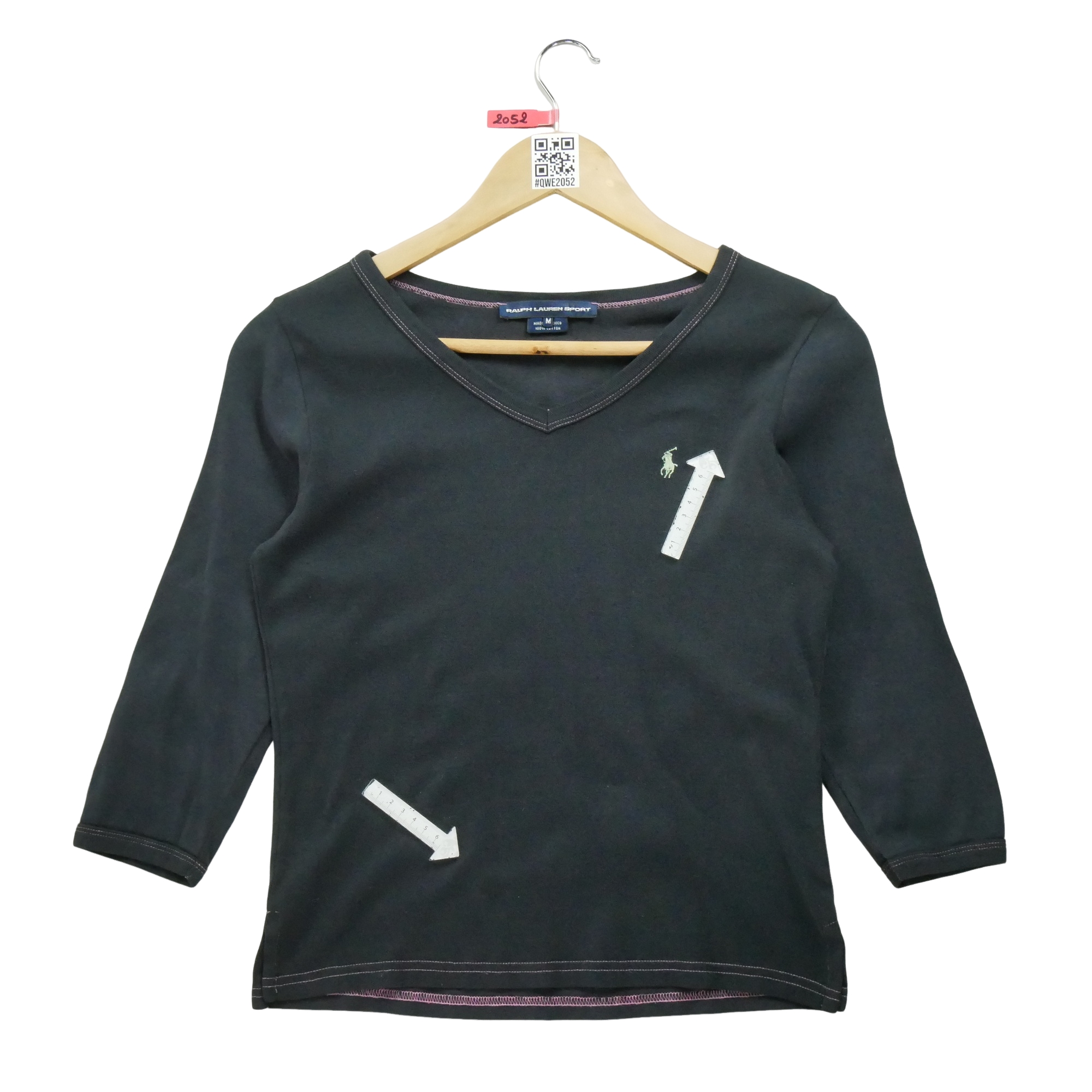 La longueur est mesurée du col au bas du vêtement. La largeur est mesuré d’aisselle à aisselle. La longueur des manches est mesurée du col au bas de la manche.