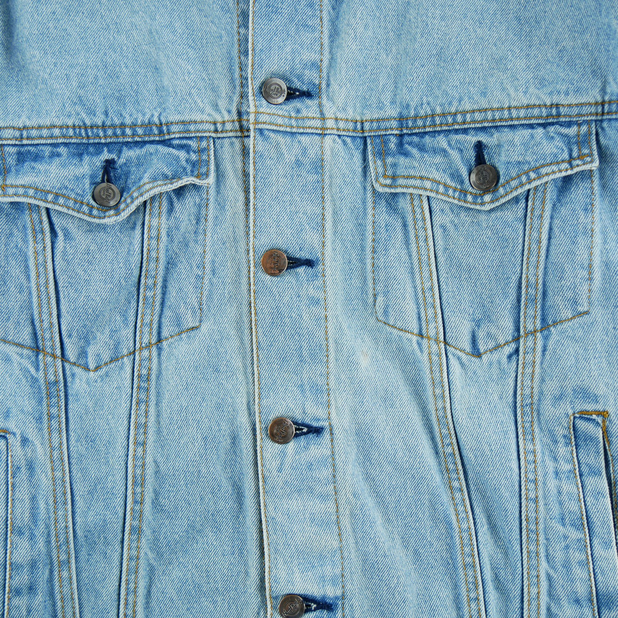 Cette veste femme vintage London bleu clair de la marque Hard Rock Cafe en taille 2XL est un produit d'occasion en très bon état. Nous l'avons vérifiée et nettoyée minutieusement pour vous offrir un produit de qualité. Bien qu'il puisse y avoir de légères traces d'usure, la veste est 100% fonctionnelle et ne présente aucun défaut majeur. Vous pouvez donc être sûr(e) de faire une bonne affaire en achetant ce produit.