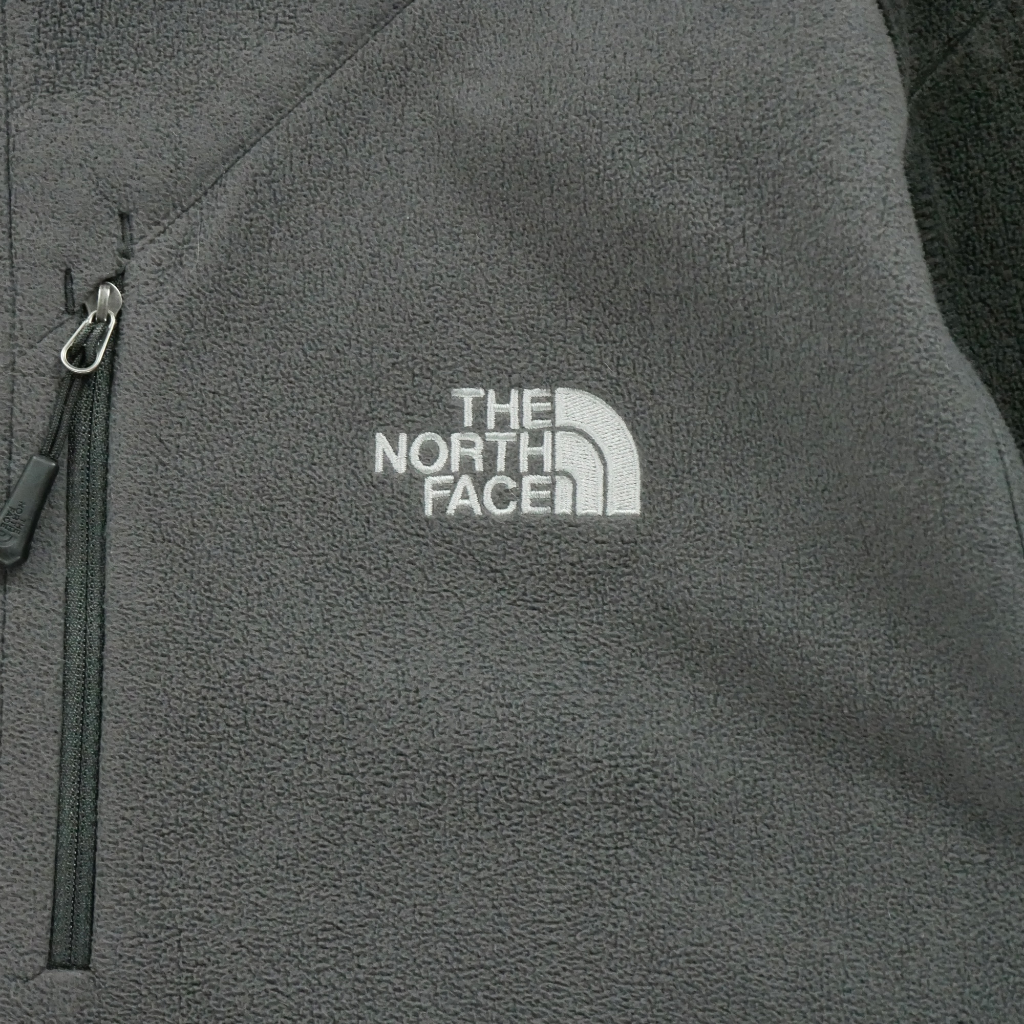 Cette veste polaire WindWall pour homme de la marque The North Face en taille XL, de couleur gris, est discrète et élégante, avec son design épuré et ses finitions soignées.